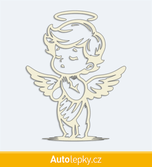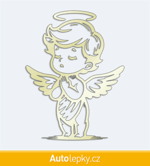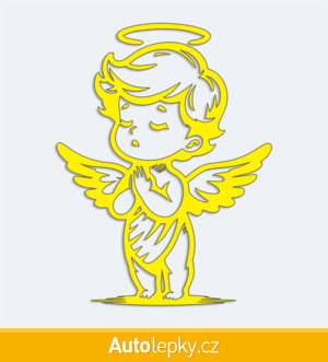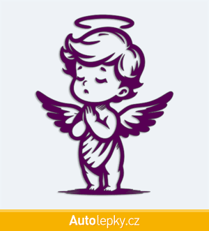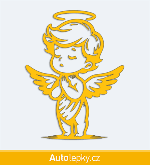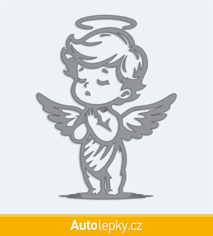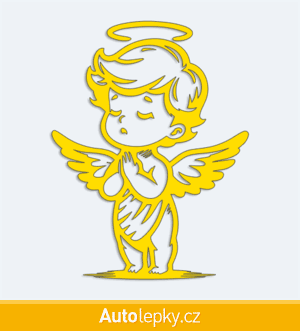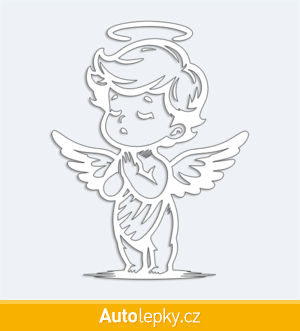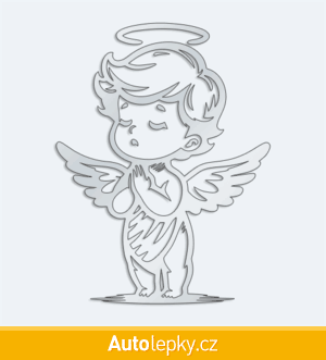 Nálepku andílek na auto vyrábíme ve 40 barvách a mnoha velikostech. Minimální rozměr samolepky je 9.9×13 cm, katalogové číslo 6243. Nálepka andílek na auto je vyrobena z kvalitní samolepicí fólie s životností 3-5 let.