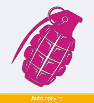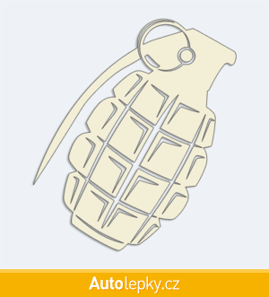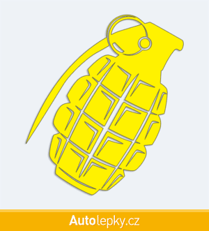 Nálepku handgranát na auto vyrábíme ve 40 barvách a mnoha velikostech. Minimální rozměr samolepky je 8.7×10 cm, katalogové číslo 6276. Nálepka handgranát na auto je vyrobena z kvalitní samolepicí fólie s životností 3-5 let.