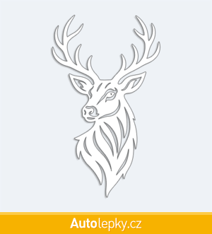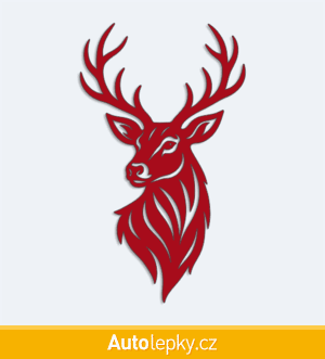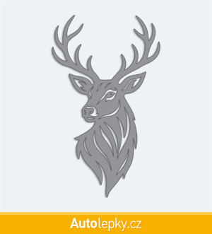 Nálepku hlava jelena na auto vyrábíme ve 40 barvách a mnoha velikostech. Minimální rozměr samolepky je 5.9×10 cm, katalogové číslo 6240. Nálepka hlava jelena na auto je vyrobena z kvalitní samolepicí fólie s životností 3-5 let.