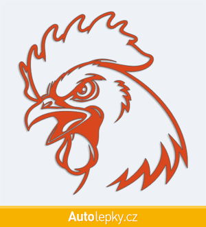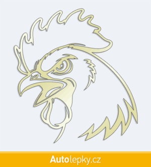 Nálepku hlava kohouta na auto vyrábíme ve 40 barvách a mnoha velikostech. Minimální rozměr samolepky je 12×13 cm, katalogové číslo 5948. Nálepka hlava kohouta na auto je vyrobena z kvalitní samolepicí fólie s životností 3-5 let.