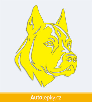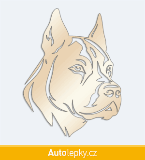 Nálepku hlava pitbulla na auto vyrábíme ve 40 barvách a mnoha velikostech. Minimální rozměr samolepky je 7.6×10 cm, katalogové číslo 5993. Nálepka hlava pitbulla na auto je vyrobena z kvalitní samolepicí fólie s životností 3-5 let.