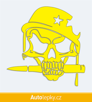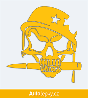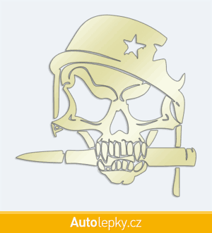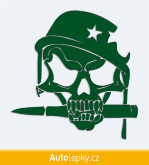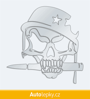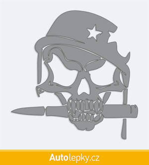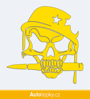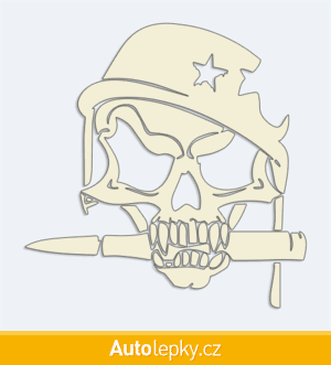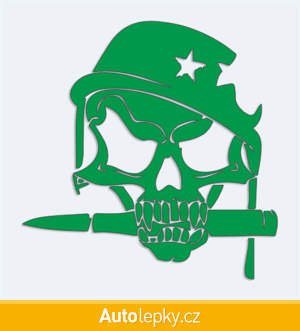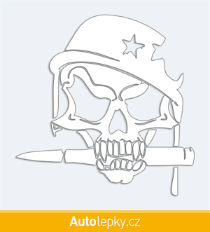 Nálepku lebka vojáka na auto vyrábíme ve 40 barvách a mnoha velikostech. Minimální rozměr samolepky je 12.8×13 cm, katalogové číslo 6229. Nálepka lebka vojáka na auto je vyrobena z kvalitní samolepicí fólie s životností 3-5 let.