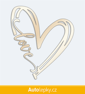 Nálepku love srdce na auto vyrábíme ve 40 barvách a mnoha velikostech. Minimální rozměr samolepky je 8.6×10 cm, katalogové číslo 6238. Nálepka love srdce na auto je vyrobena z kvalitní samolepicí fólie s životností 3-5 let.