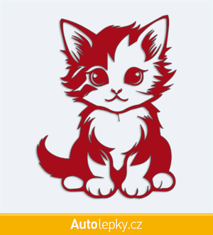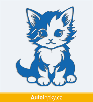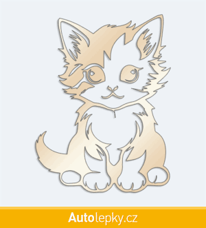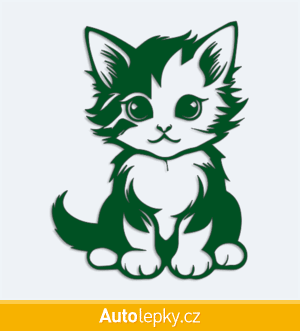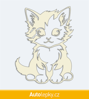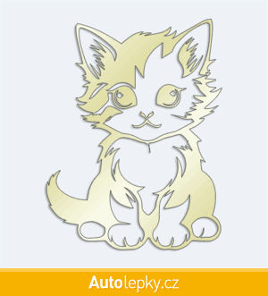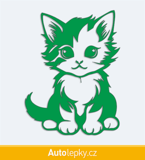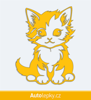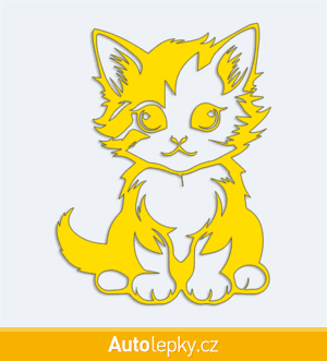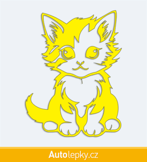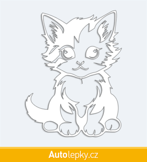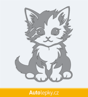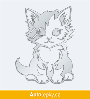 Nálepku malé koťátko na auto vyrábíme ve 40 barvách a mnoha velikostech. Minimální rozměr samolepky je 7.6×10 cm, katalogové číslo 6269. Nálepka malé koťátko na auto je vyrobena z kvalitní samolepicí fólie s životností 3-5 let.