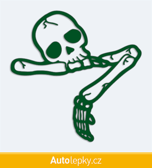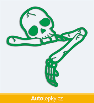Nálepku znuděná kostra na auto vyrábíme ve 40 barvách a mnoha velikostech. Minimální rozměr samolepky je 10×10 cm, katalogové číslo 6277. Nálepka na auto znuděná kostra je vyrobena z kvalitní samolepicí fólie s životností 3-5 let.