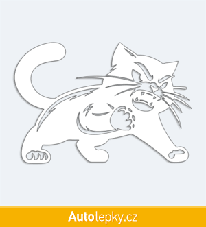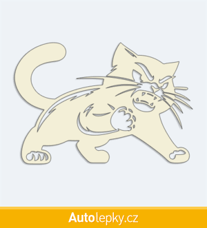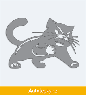 Nálepku rozzuřený kocour na auto vyrábíme ve 40 barvách a mnoha velikostech. Minimální rozměr samolepky je 12×8.2 cm, katalogové číslo 6009. Nálepka rozzuřený kocour na auto je vyrobena z kvalitní samolepicí fólie s životností 3-5 let.