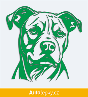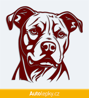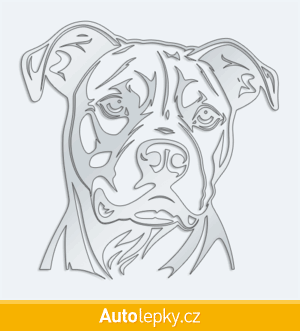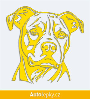 Nálepku hlava pitbula na auto vyrábíme ve 40 barvách a mnoha velikostech. Minimální rozměr samolepky je 19.9×20 cm, katalogové číslo 6043. Nálepka s hlavou pitbula na auto je vyrobena z kvalitní samolepicí fólie s životností 3-5 let.