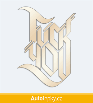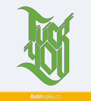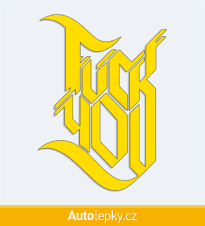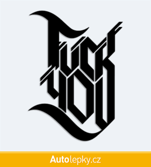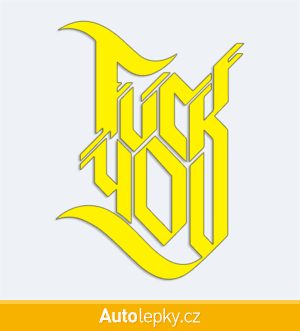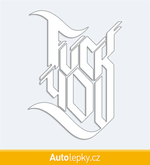 Nálepku nápis Fuck You na auto vyrábíme ve 40 barvách a mnoha velikostech. Minimální rozměr samolepky je 7.3×10 cm, katalogové číslo 6047. Nálepka s nápisem Fuck You je vyrobena z kvalitní samolepicí fólie s životností 3-5 let.