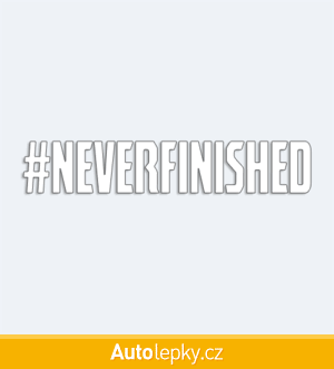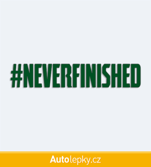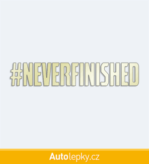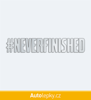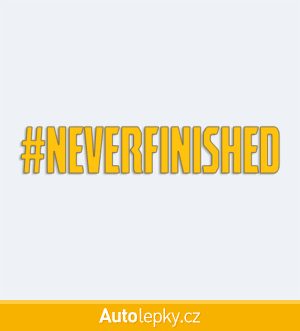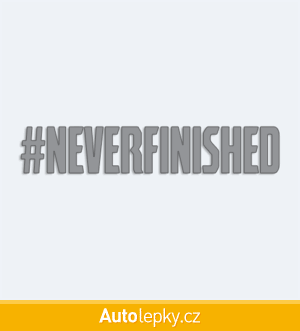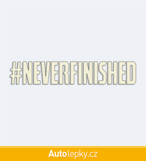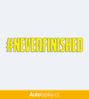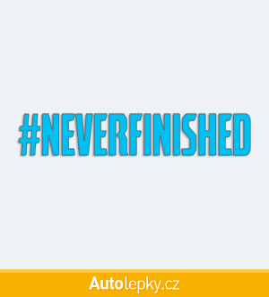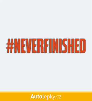 Nálepku neverfinished na auto vyrábíme ve 40 barvách a mnoha velikostech. Minimální rozměr samolepky je 10×1.8 cm, katalogové číslo 6173. Nálepka s nápisem neverfinished na auto je vyrobena z kvalitní samolepicí fólie s životností 3-5 let.