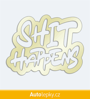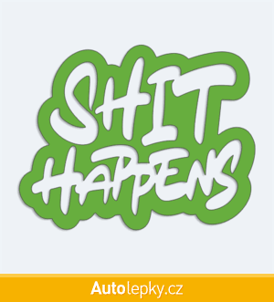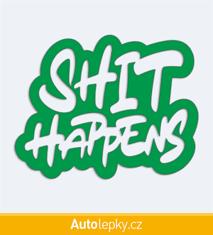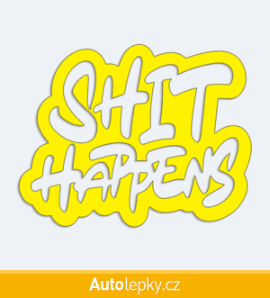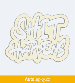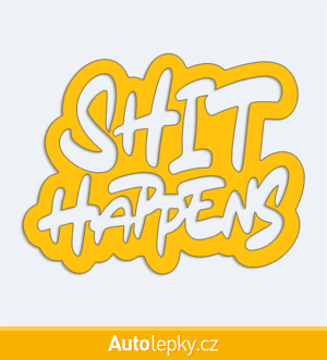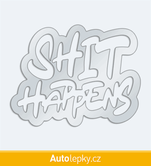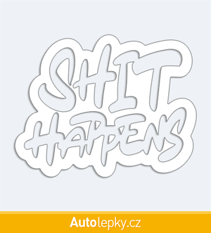 Nálepku Shit Happens na auto vyrábíme ve 40 barvách a mnoha velikostech. Minimální rozměr samolepky je 10×7.9 cm, katalogové číslo 6013. Nálepka s nápisem Shit Happens je vyrobena z kvalitní samolepicí fólie s životností 3-5 let.