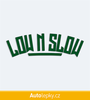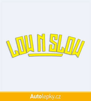 Nálepku Low N Slow na auto vyrábíme ve 40 barvách a mnoha velikostech. Minimální rozměr samolepky je 10×3 cm, katalogové číslo 6035. Nálepka s textem Low N Slow je vyrobena z kvalitní samolepicí fólie s životností 3-5 let.