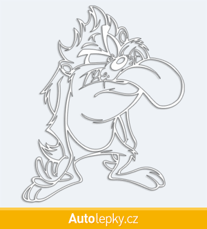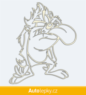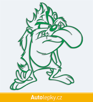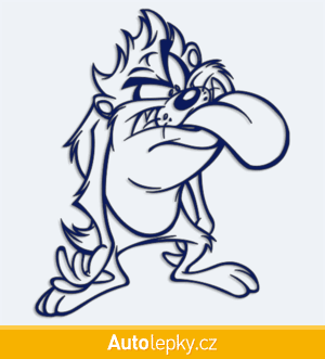 Nálepku tasmánský čert na auto vyrábíme ve 40 barvách a mnoha velikostech. Minimální rozměr samolepky je 12.4×15 cm, katalogové číslo 6253. Nálepka tasmánský čert na auto je vyrobena z kvalitní samolepicí fólie s životností 3-5 let.