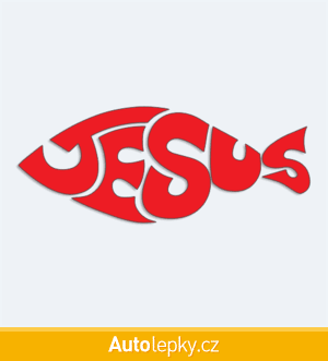 Nálepku JESUS na auto vyrábíme ve 40 barvách a mnoha velikostech. Minimální rozměr samolepky je 10×4 cm, katalogové číslo 6323. Nápis JESUS na auto je vyrobena z kvalitní samolepicí fólie s životností 3-5 let.