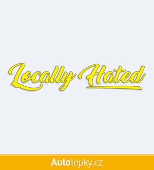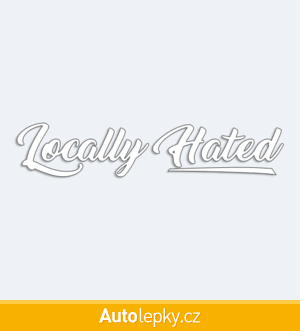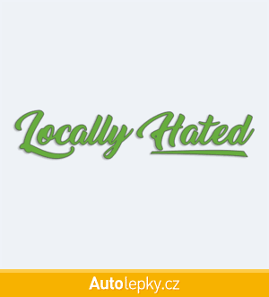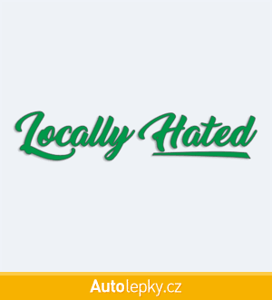 Nálepku Locally Hated na auto vyrábíme ve 40 barvách a mnoha velikostech. Minimální rozměr samolepky je 12×2.4 cm, katalogové číslo 6332. Nápis Locally Hated na auto je vyrobena z kvalitní samolepicí fólie s životností 3-5 let.