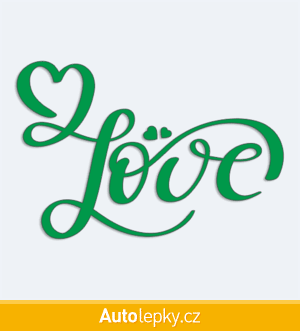 Nálepku love se srdíčkama na auto vyrábíme ve 40 barvách a mnoha velikostech. Minimální rozměr samolepky je 10×6.7 cm, katalogové číslo 6312. Nápis love se srdíčkama na auto je vyrobena z kvalitní samolepicí fólie s životností 3-5 let.