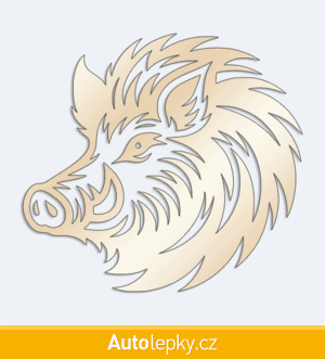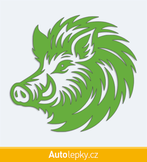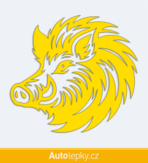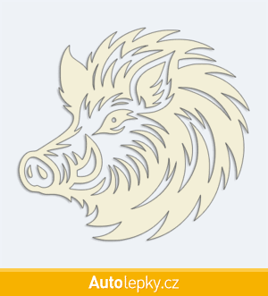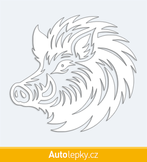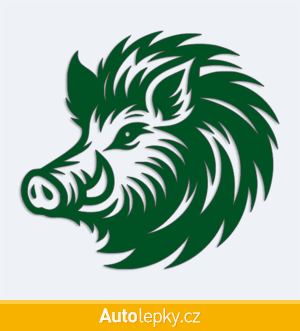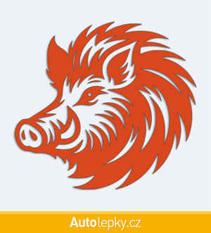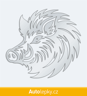 Nálepku hlava divočáka na auto vyrábíme ve 40 barvách a mnoha velikostech. Minimální rozměr samolepky je 10×9.2 cm, katalogové číslo 6107. Polep hlava divočáka na auto je vyrobena z kvalitní samolepicí fólie s životností 3-5 let.