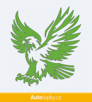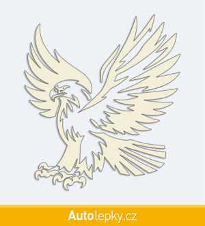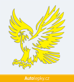 Nálepku letící orel na auto vyrábíme ve 40 barvách a mnoha velikostech. Minimální rozměr samolepky je 8.8×10 cm, katalogové číslo 6129. Polep na auto letící orel je vyrobena z kvalitní samolepicí fólie s životností 3-5 let.