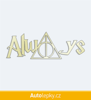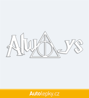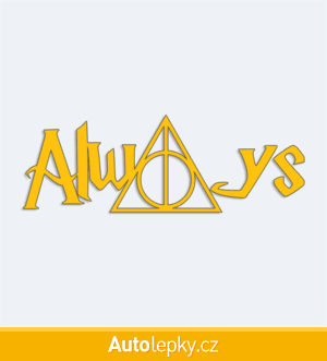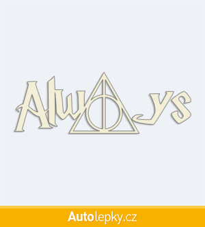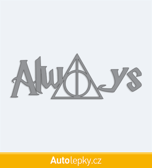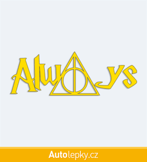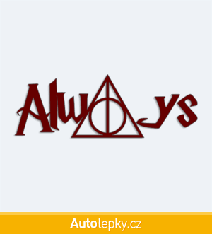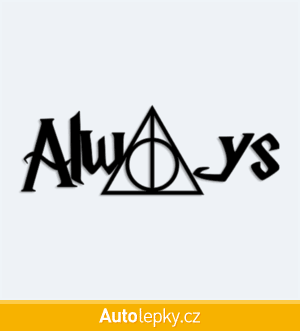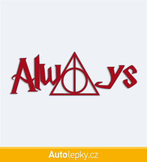 Nálepku Harry Potter Always na auto vyrábíme ve 40 barvách a mnoha velikostech. Minimální rozměr samolepky je 10×3.5 cm, katalogové číslo 6350. Samolepka Harry Potter Always na auto je vyrobena z kvalitní samolepicí fólie s životností 3-5 let.