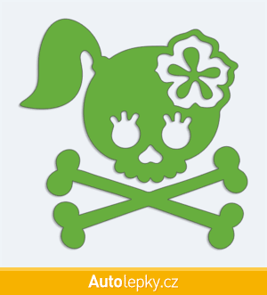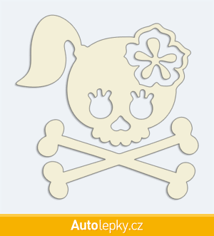 Nálepku lady skull na auto vyrábíme ve 40 barvách a mnoha velikostech. Minimální rozměr samolepky je 7.9×8 cm, katalogové číslo 6214. Samolepka lady skull na auto je vyrobena z kvalitní samolepicí fólie s životností 3-5 let.