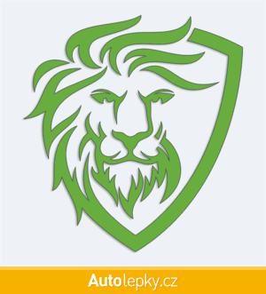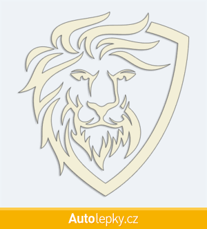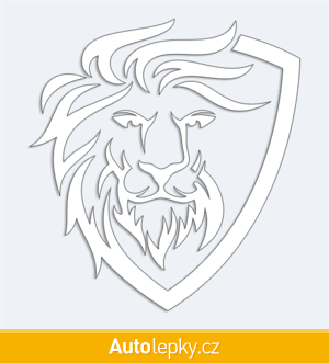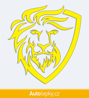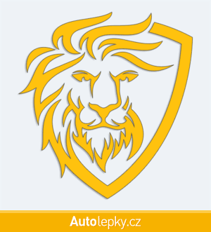 Nálepku lví hlava v erbu na auto vyrábíme ve 40 barvách a mnoha velikostech. Minimální rozměr samolepky je 9.3×10 cm, katalogové číslo 5944. Samolepka lví hlava v erbu na auto je vyrobena z kvalitní samolepicí fólie s životností 3-5 let.