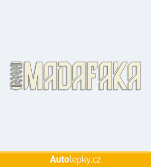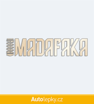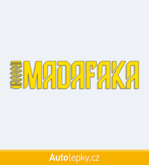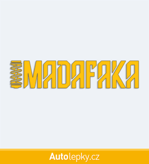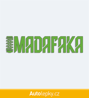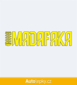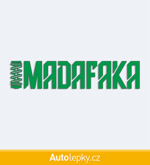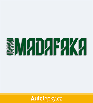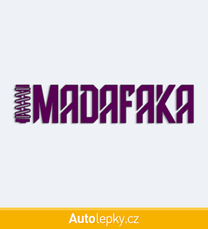 Nálepku madafaka na auto vyrábíme ve 40 barvách a mnoha velikostech. Minimální rozměr samolepky je 13×2.8 cm, katalogové číslo 6174. Samolepka madafaka na auto je vyrobena z kvalitní samolepicí fólie s životností 3-5 let.