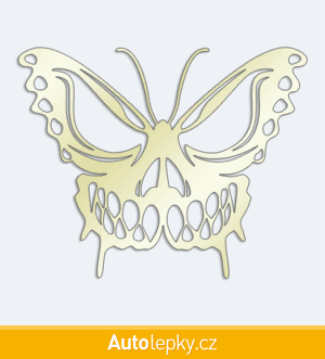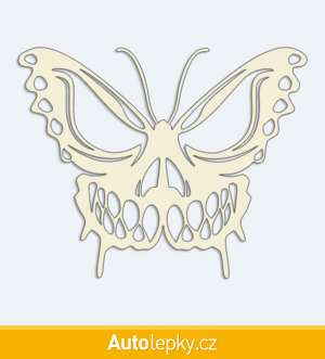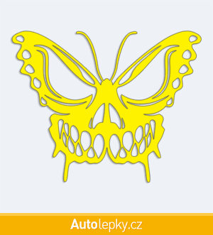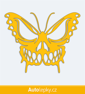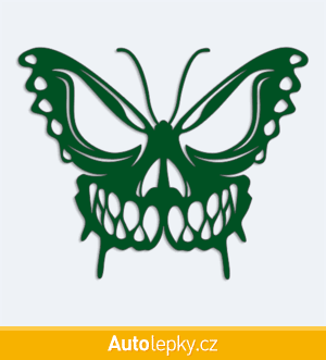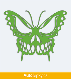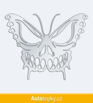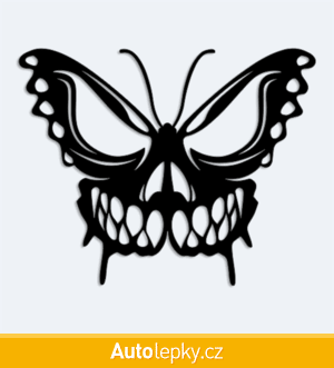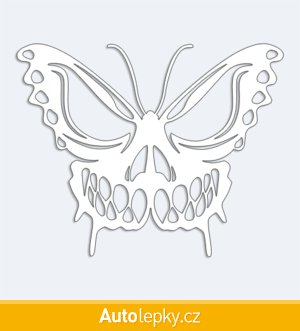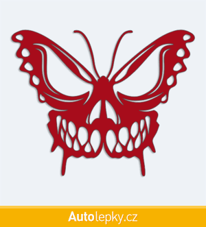 Nálepku motýl smrti na auto vyrábíme ve 40 barvách a mnoha velikostech. Minimální rozměr samolepky je 10×8 cm, katalogové číslo 6326. Samolepka motýl smrti na auto je vyrobena z kvalitní samolepicí fólie s životností 3-5 let.