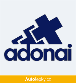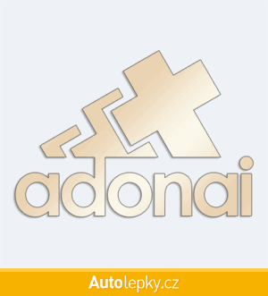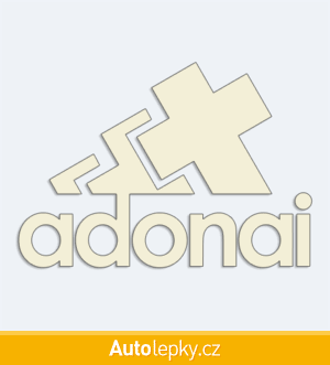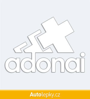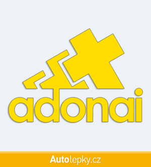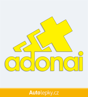 Nálepku adonai na auto vyrábíme ve 40 barvách a mnoha velikostech. Minimální rozměr samolepky je 10×7 cm, katalogové číslo 6316. Samolepka na auto adonai je vyrobena z kvalitní samolepicí fólie s životností 3-5 let.