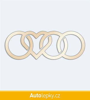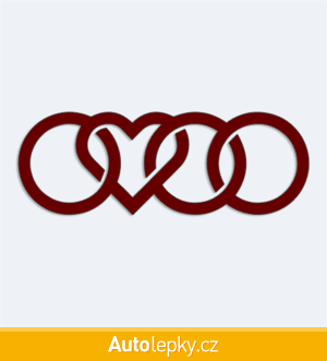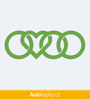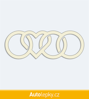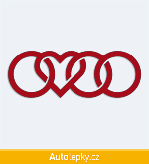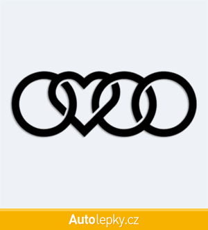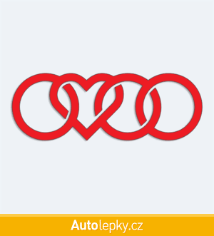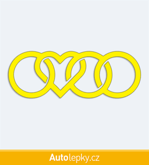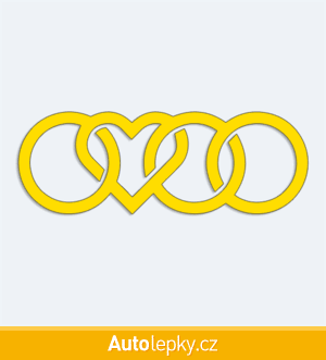 Nálepku Audi love na auto vyrábíme ve 40 barvách a mnoha velikostech. Minimální rozměr samolepky je 10×3.5 cm, katalogové číslo 5962. Samolepka na auto Audi love je vyrobena z kvalitní samolepicí fólie s životností 3-5 let.