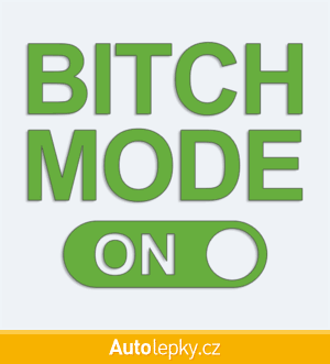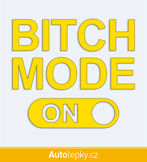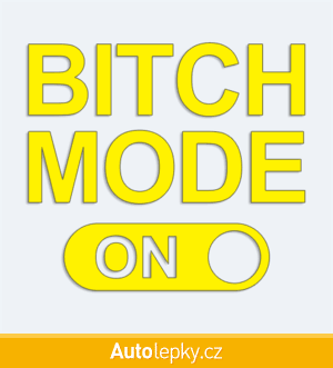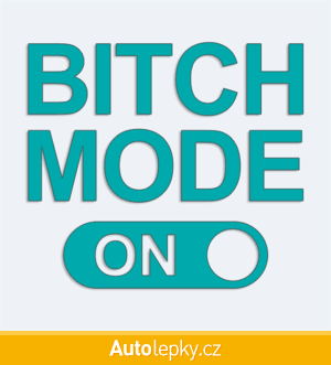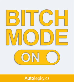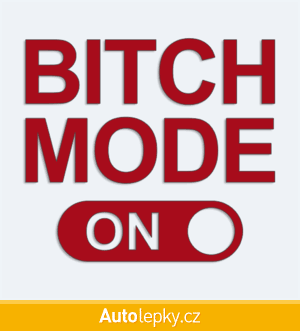 Nálepku Bitch Mode On na auto vyrábíme ve 40 barvách a mnoha velikostech. Minimální rozměr samolepky je 10×9 cm, katalogové číslo 5976. Samolepka na auto Bitch Mode On je vyrobena z kvalitní samolepicí fólie s životností 3-5 let.