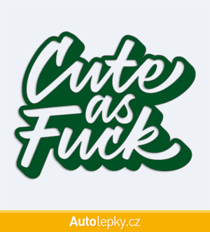 Nálepku Cute as Fuck na auto vyrábíme ve 40 barvách a mnoha velikostech. Minimální rozměr samolepky je 10×8.1 cm, katalogové číslo 6039. Samolepka na auto Cute as Fuck je vyrobena z kvalitní samolepicí fólie s životností 3-5 let.