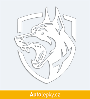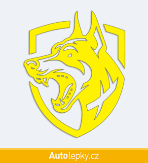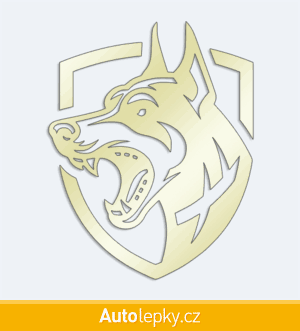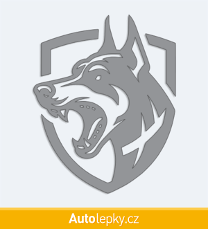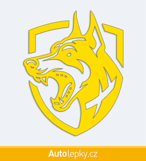 Nálepku dobrman v erbu na auto vyrábíme ve 40 barvách a mnoha velikostech. Minimální rozměr samolepky je 8×10 cm, katalogové číslo 6104. Samolepka na auto dobrman v erbu je vyrobena z kvalitní samolepicí fólie s životností 3-5 let.