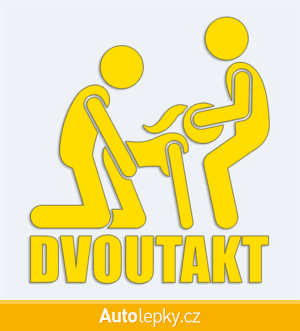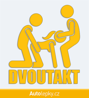 Nálepku dvoutakt na auto vyrábíme ve 40 barvách a mnoha velikostech. Minimální rozměr samolepky je 9×10 cm, katalogové číslo 5978. Samolepka na auto dvoutakt je vyrobena z kvalitní samolepicí fólie s životností 3-5 let.