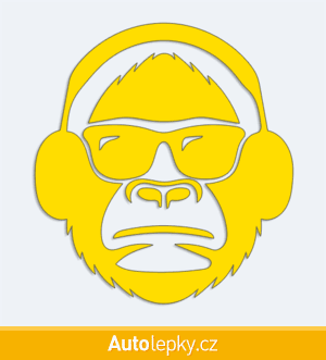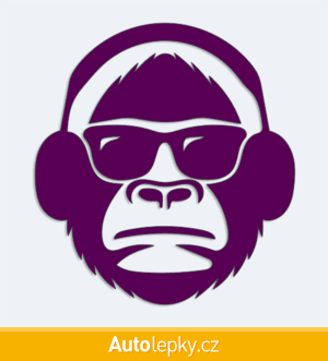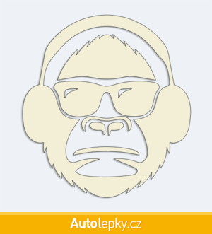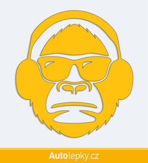 Nálepku gorila se sluchátkama na auto vyrábíme ve 40 barvách a mnoha velikostech. Minimální rozměr samolepky je 9.2×10 cm, katalogové číslo 6033. Samolepka na auto gorila se sluchátkama je vyrobena z kvalitní samolepicí fólie s životností 3-5 let.