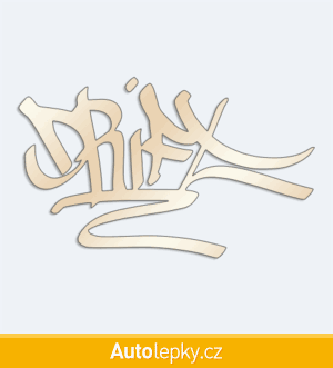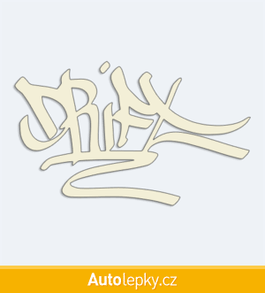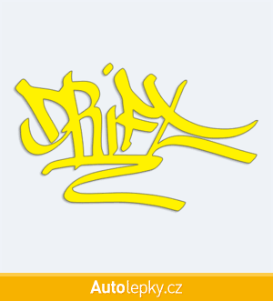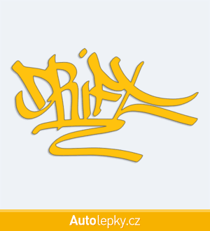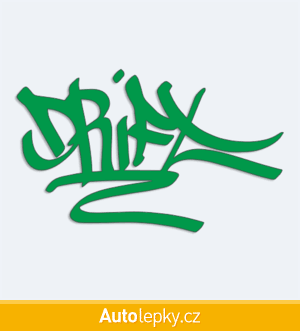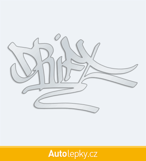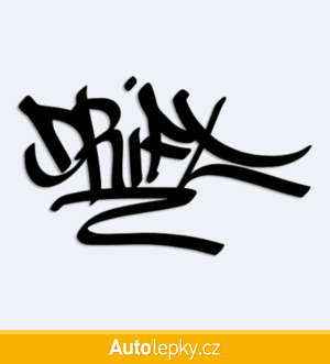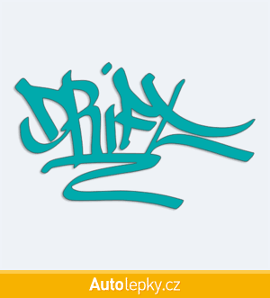 Nálepku graffiti drift na auto vyrábíme ve 40 barvách a mnoha velikostech. Minimální rozměr samolepky je 10×6.1 cm, katalogové číslo 5968. Samolepka na auto graffiti drift je vyrobena z kvalitní samolepicí fólie s životností 3-5 let.
