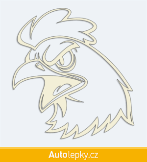 Nálepku hlava slepice na auto vyrábíme ve 40 barvách a mnoha velikostech. Minimální rozměr samolepky je 11.2×12 cm, katalogové číslo 5947. Samolepka na auto hlava slepice je vyrobena z kvalitní samolepicí fólie s životností 3-5 let.