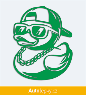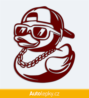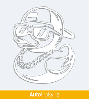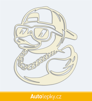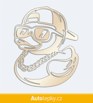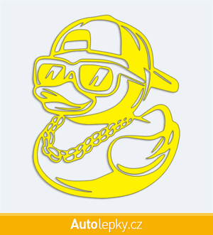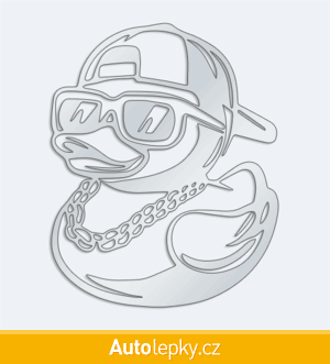 Nálepku kačenka s řetězem na auto vyrábíme ve 40 barvách a mnoha velikostech. Minimální rozměr samolepky je 8×10 cm, katalogové číslo 6376. Samolepka na auto kačenka s řetězem je vyrobena z kvalitní samolepicí fólie s životností 3-5 let.