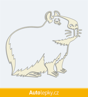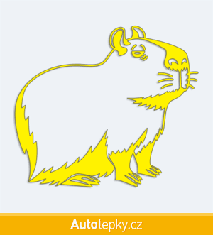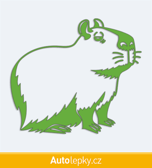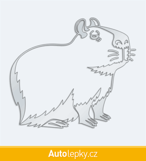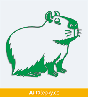 Nálepku kapybara na auto vyrábíme ve 40 barvách a mnoha velikostech. Minimální rozměr samolepky je 10×8.8 cm, katalogové číslo 6251. Samolepka na auto kapybara je vyrobena z kvalitní samolepicí fólie s životností 3-5 let.