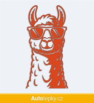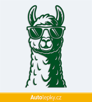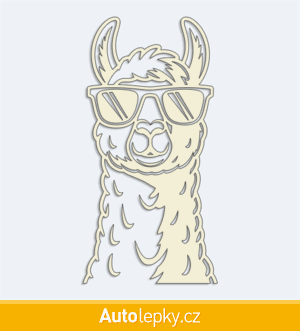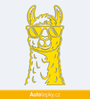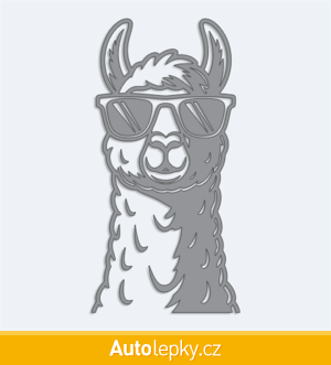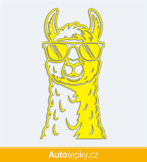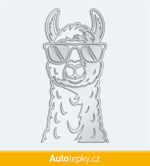 Nálepku lama v brýlích na auto vyrábíme ve 40 barvách a mnoha velikostech. Minimální rozměr samolepky je 7.5×15 cm, katalogové číslo 6334. Samolepka na auto lama v brýlích je vyrobena z kvalitní samolepicí fólie s životností 3-5 let.
