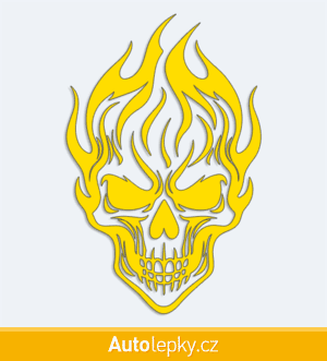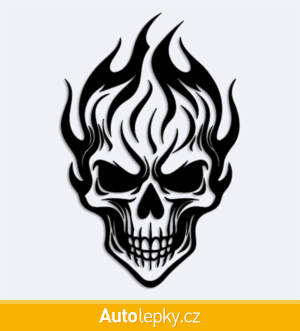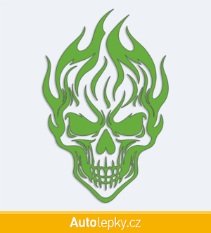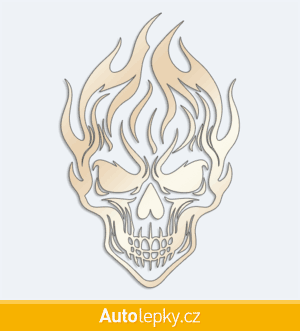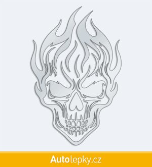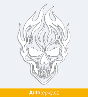 Nálepku lebka s plameny na auto vyrábíme ve 40 barvách a mnoha velikostech. Minimální rozměr samolepky je 8.4×13 cm, katalogové číslo 6255. Samolepka na auto lebka s plameny je vyrobena z kvalitní samolepicí fólie s životností 3-5 let.