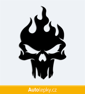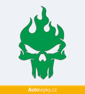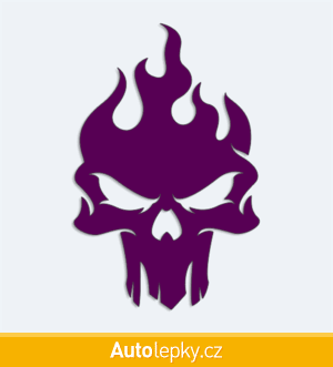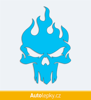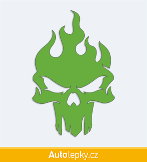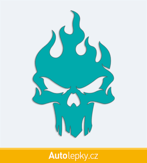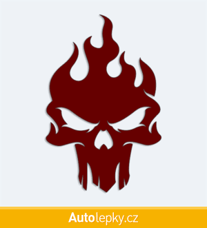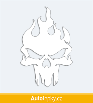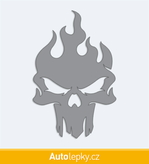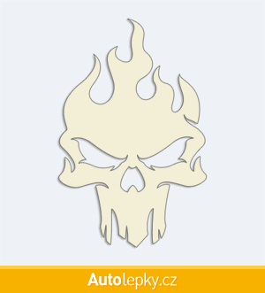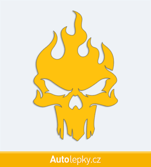 Nálepku lebka v plamenech na auto vyrábíme ve 40 barvách a mnoha velikostech. Minimální rozměr samolepky je 6.5×10 cm, katalogové číslo 6003. Samolepka na auto lebka v plamenech je vyrobena z kvalitní samolepicí fólie s životností 3-5 let.