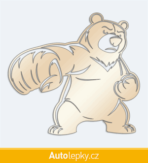 Nálepku medvěd s pěstí na auto vyrábíme ve 40 barvách a mnoha velikostech. Minimální rozměr samolepky je 15×14 cm, katalogové číslo 6329. Samolepka na auto medvěd s pěstí je vyrobena z kvalitní samolepicí fólie s životností 3-5 let.