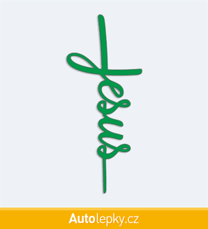Nálepku nápis Jesus na auto vyrábíme ve 40 barvách a mnoha velikostech. Minimální rozměr samolepky je 4.2×10 cm, katalogové číslo 6023. Samolepka na auto nápis Jesus je vyrobena z kvalitní samolepicí fólie s životností 3-5 let.