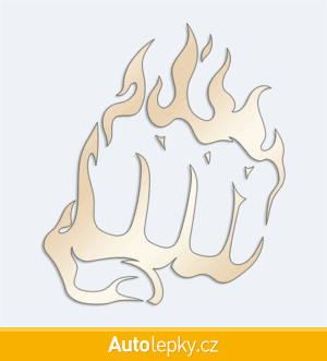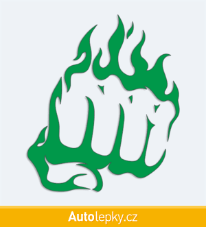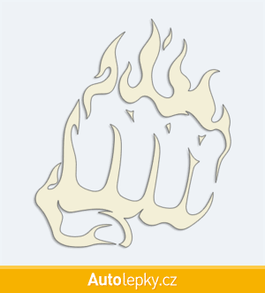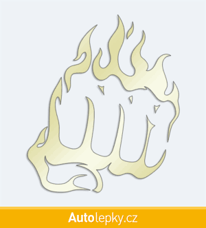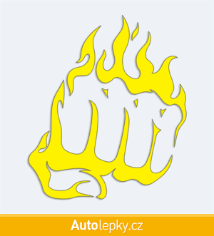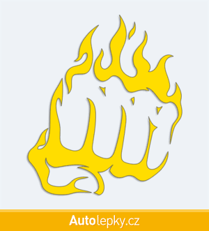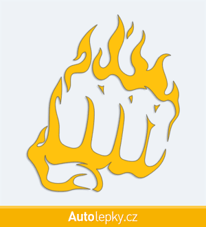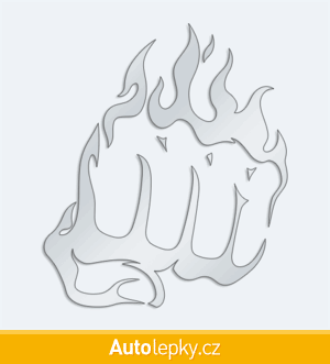 Nálepku pěst v plamenech na auto vyrábíme ve 40 barvách a mnoha velikostech. Minimální rozměr samolepky je 8.6×10 cm, katalogové číslo 6267. Samolepka na auto pěst v plamenech je vyrobena z kvalitní samolepicí fólie s životností 3-5 let.