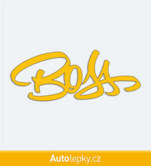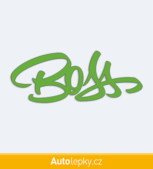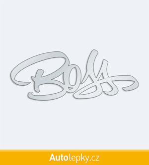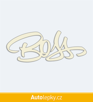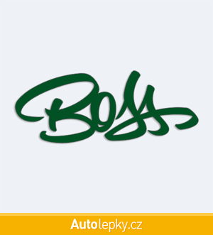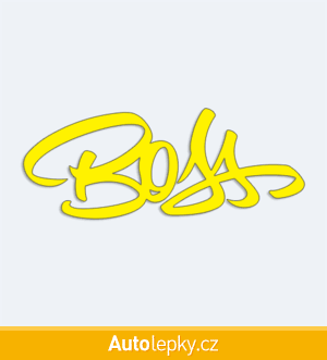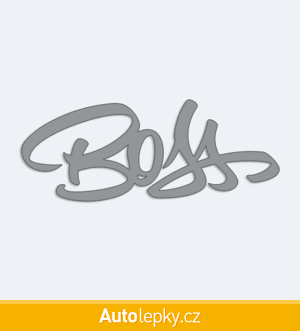 Nálepku nápis Boss na auto vyrábíme ve 40 barvách a mnoha velikostech. Minimální rozměr samolepky je 10×4 cm, katalogové číslo 6037. Samolepka na auto s nápisem Boss je vyrobena z kvalitní samolepicí fólie s životností 3-5 let.