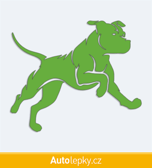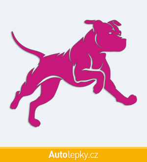 Nálepku staford v běhu na auto vyrábíme ve 40 barvách a mnoha velikostech. Minimální rozměr samolepky je 10×8.5 cm, katalogové číslo 6095. Samolepka na auto staford v běhu je vyrobena z kvalitní samolepicí fólie s životností 3-5 let.