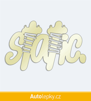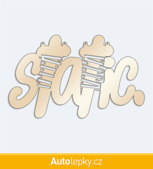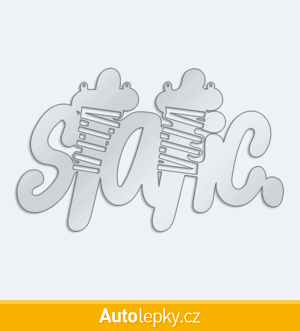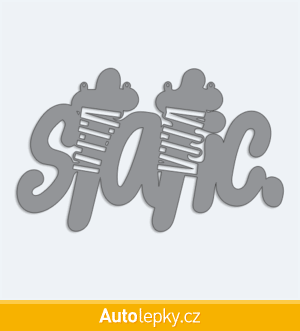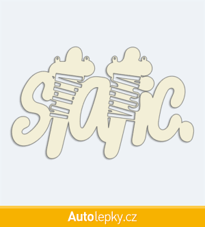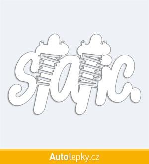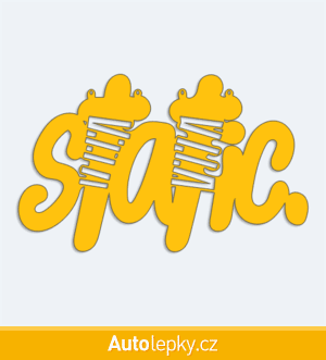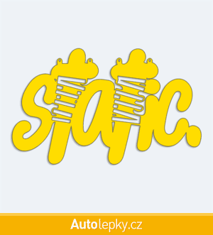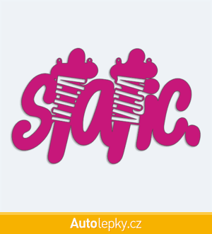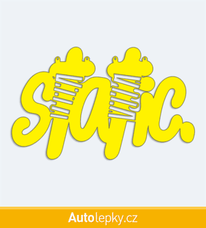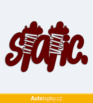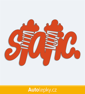 Nálepku tlumiče static na auto vyrábíme ve 40 barvách a mnoha velikostech. Minimální rozměr samolepky je 13×8 cm, katalogové číslo 5969. Samolepka na auto tlumiče static je vyrobena z kvalitní samolepicí fólie s životností 3-5 let.