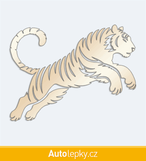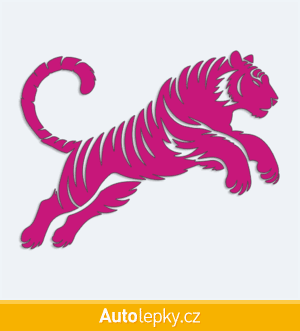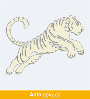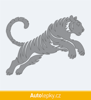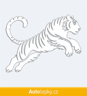 Nálepku tygr ve skoku na auto vyrábíme ve 40 barvách a mnoha velikostech. Minimální rozměr samolepky je 10×7.7 cm, katalogové číslo 6124. Samolepka na auto tygr ve skoku je vyrobena z kvalitní samolepicí fólie s životností 3-5 let.