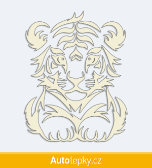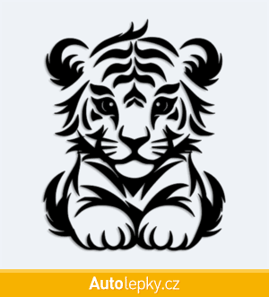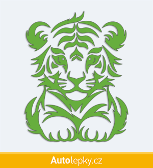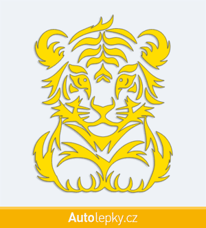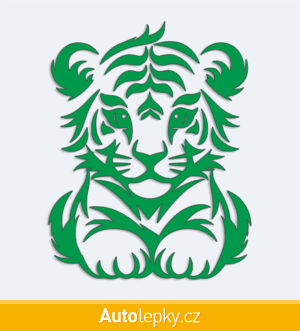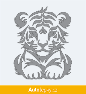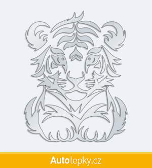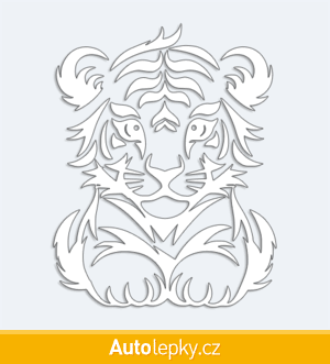 Nálepku tygříček na auto vyrábíme ve 40 barvách a mnoha velikostech. Minimální rozměr samolepky je 9.4×12 cm, katalogové číslo 6004. Samolepka na auto tygříček je vyrobena z kvalitní samolepicí fólie s životností 3-5 let.