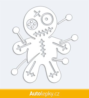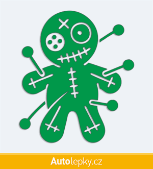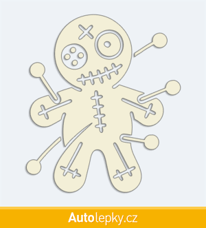Nálepku woodoo na auto vyrábíme ve 40 barvách a mnoha velikostech. Minimální rozměr samolepky je 8.7×10 cm, katalogové číslo 6005. Samolepka na auto woodoo je vyrobena z kvalitní samolepicí fólie s životností 3-5 let.
