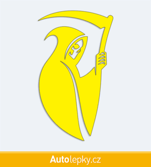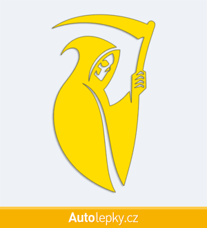 Nálepku paní smrt na auto vyrábíme ve 40 barvách a mnoha velikostech. Minimální rozměr samolepky je 5.8×10 cm, katalogové číslo 6254. Samolepka paní smrt na auto je vyrobena z kvalitní samolepicí fólie s životností 3-5 let.